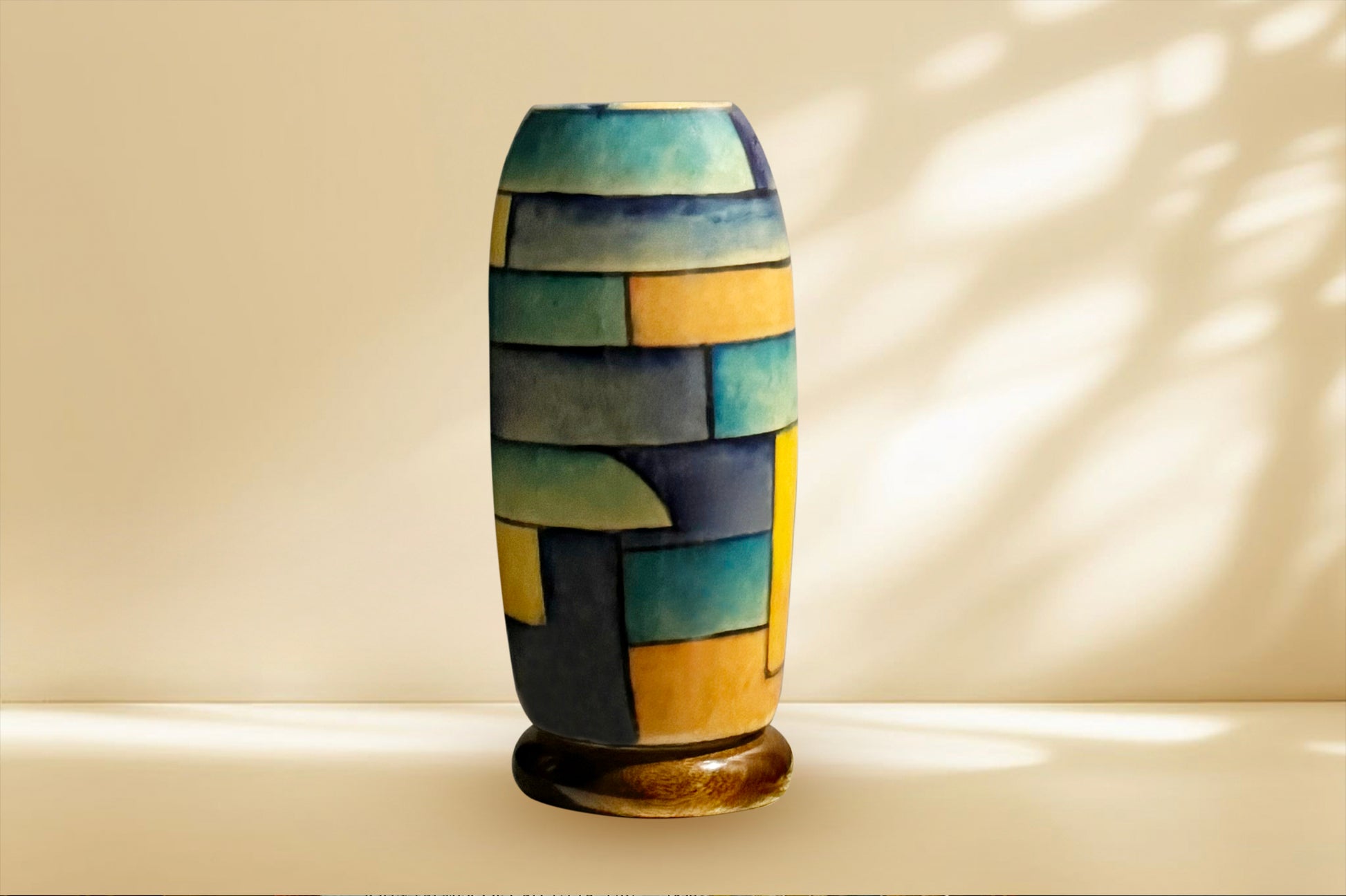 Modern geometry meets artisan soul in the Meridian Lamp, a refined statement piece inspired by balance, rhythm, and the subtle shift from day to night. This sculptural composition brings dimension and presence to any room, featuring hand-painted blocks in teal, ochre, navy, and warm neutrals. Each shape is painted by hand and sealed with a clear lacquer for enduring colour and form.